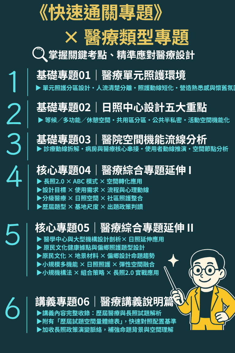 這堂《快速通關 × 醫療類型專題》,不是教你如何背設計圖,而是幫你: